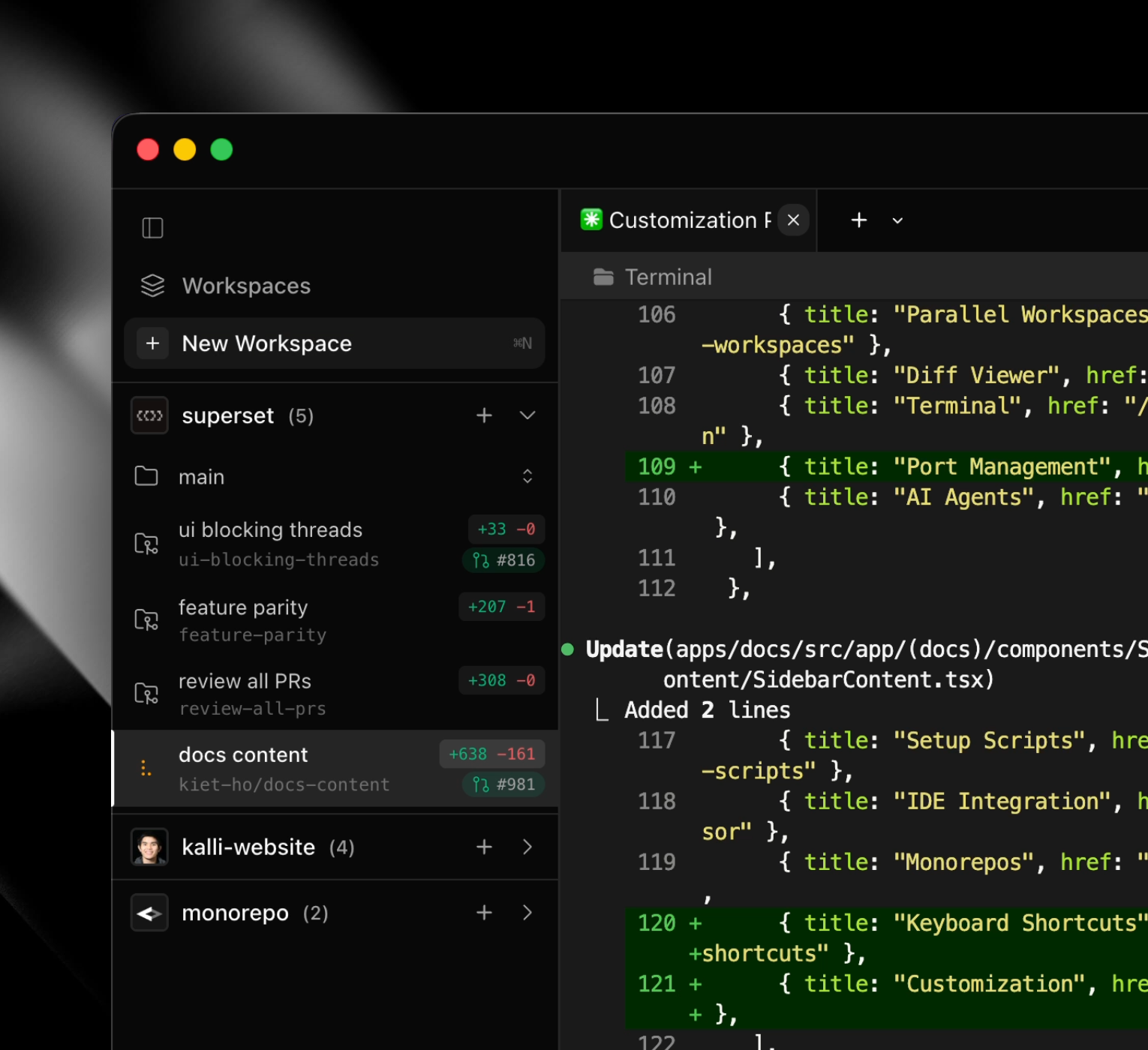 Memory leak fixes - Fixed memory leaks in terminal session management and workspace cleanup routines, reducing memory usage during long sessions