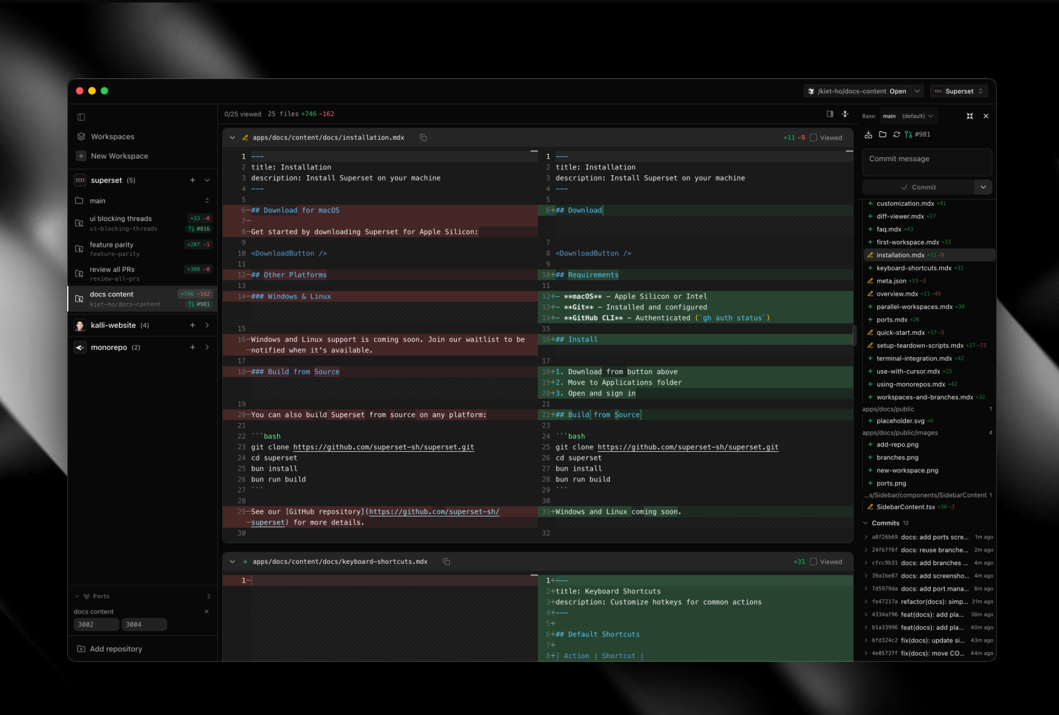 - Settings keyboard shortcut - Open settings with ⌘, (or Ctrl+, on Windows/Linux) #1080