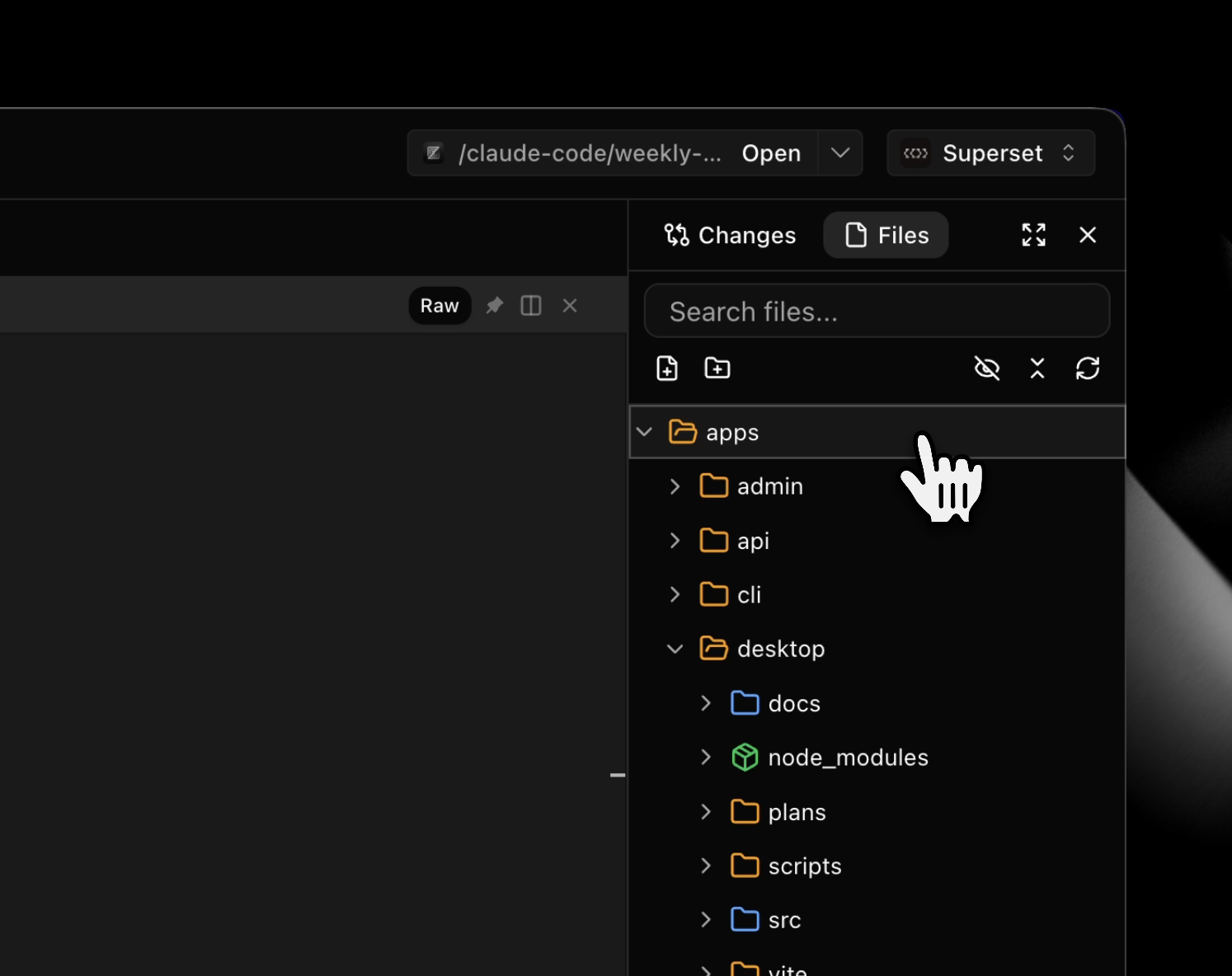 Browse and manage your project files directly from the right sidebar. The new file explorer includes a hierarchical tree view, search functionality, and full file operations.