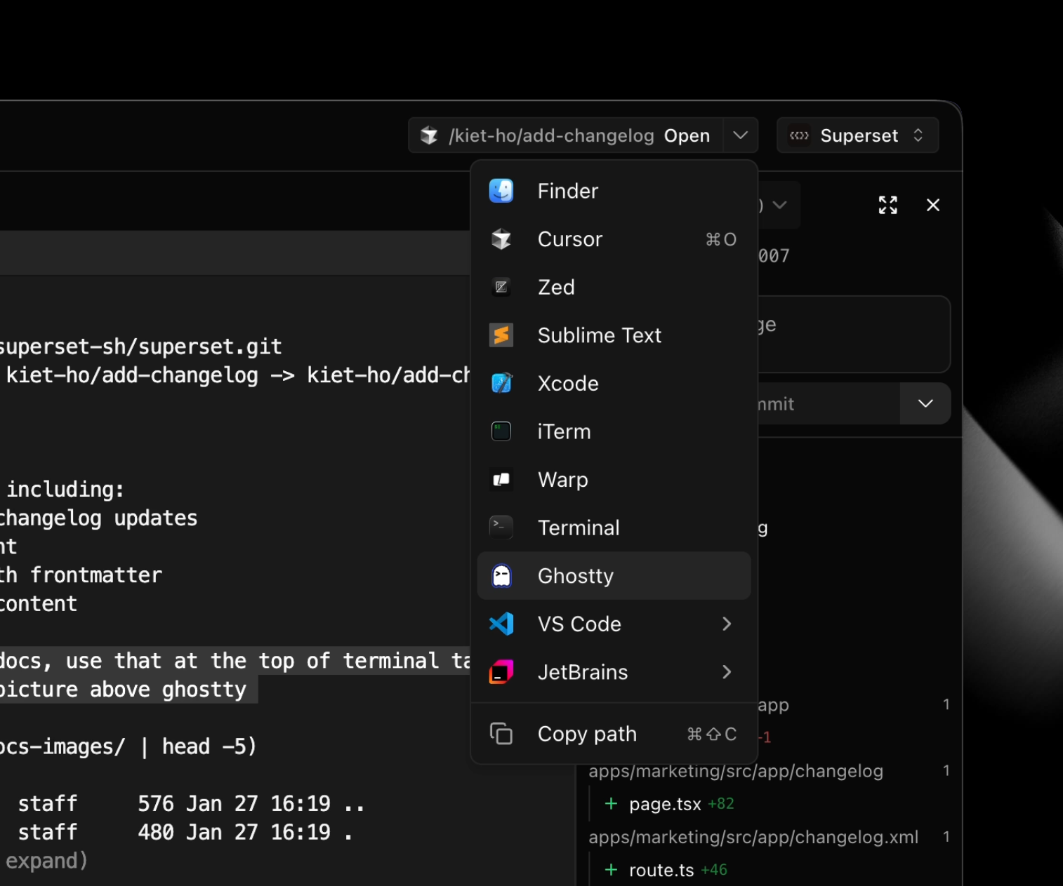- Changes sidebar redesign - Consolidated header with base branch dropdown and synced expand/collapse state #1110