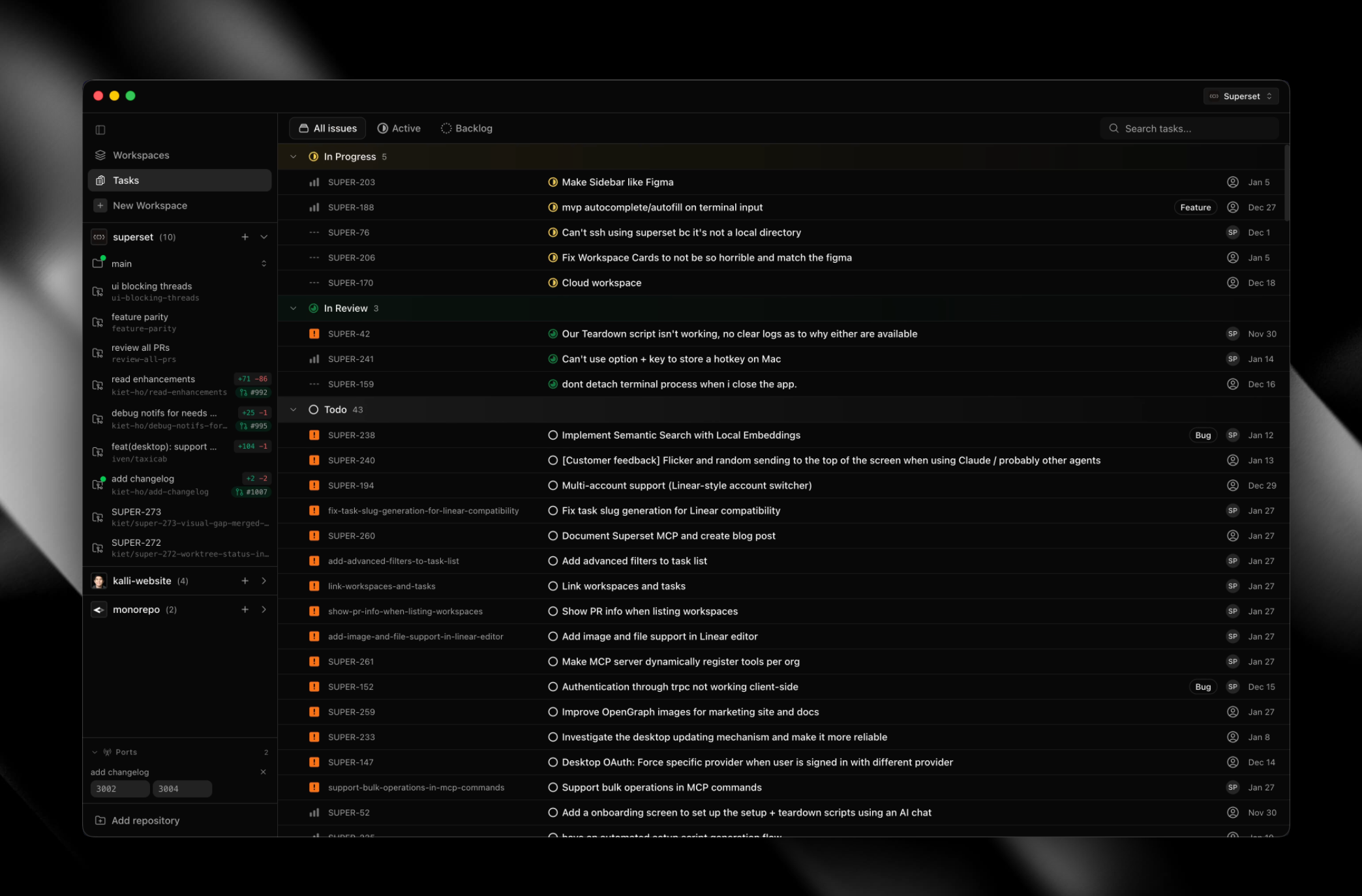 - Tasks search shortcut - Press Cmd+F to focus task search input #1098