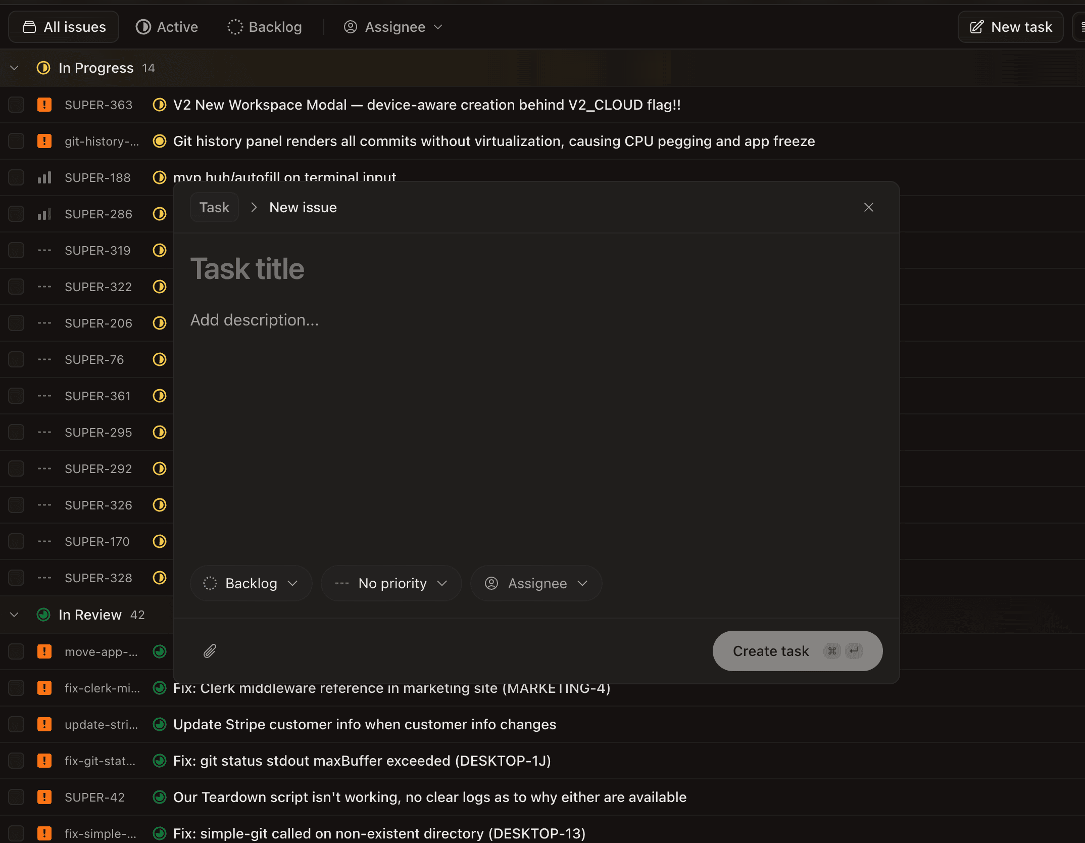 You can now create tasks and take actions on them directly from the desktop without switching to Linear or the web app.