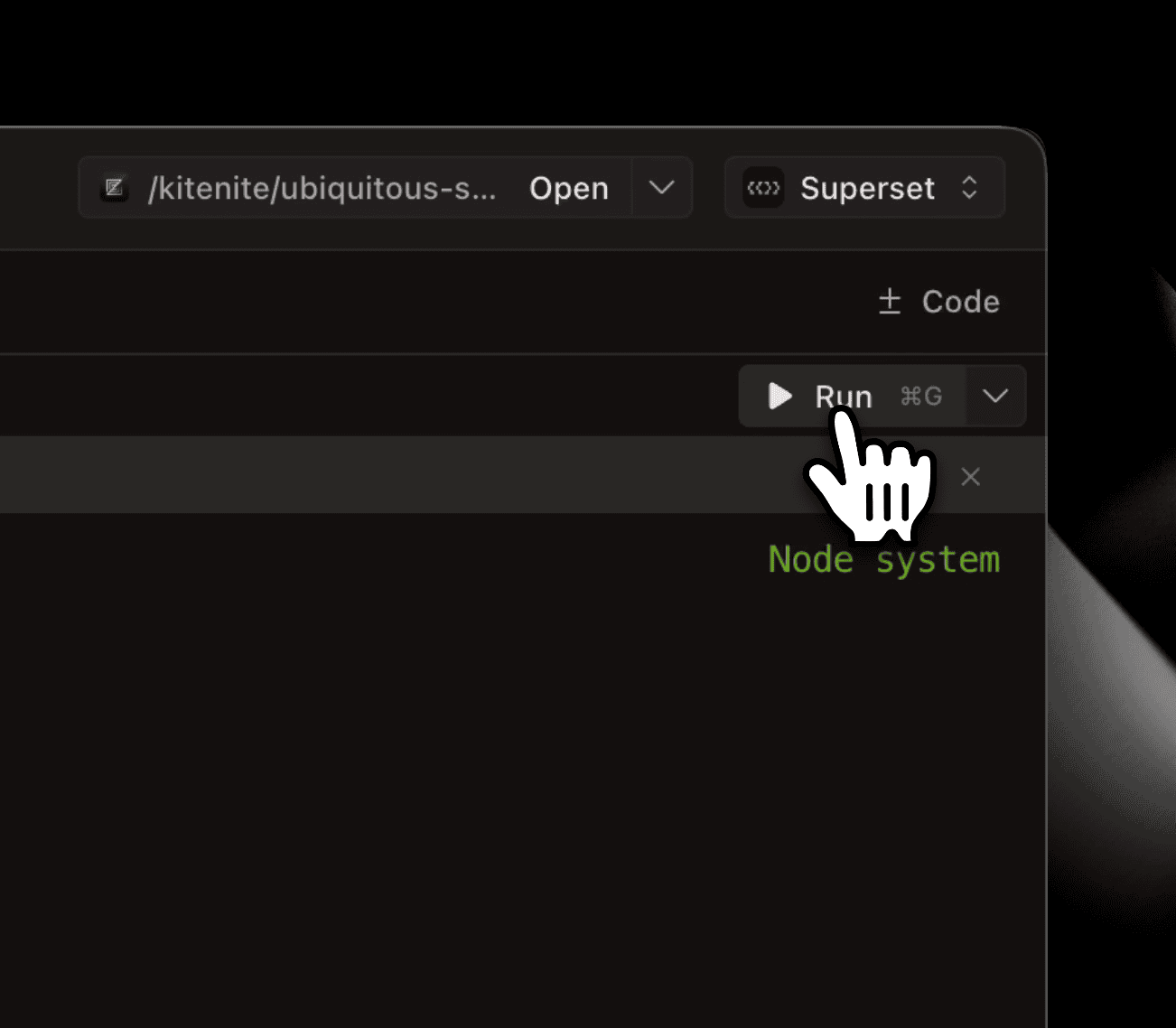 Cmd+Gtriggers the run preset from anywhere in the workspace- Stop button cancels in-progress runs immediately
